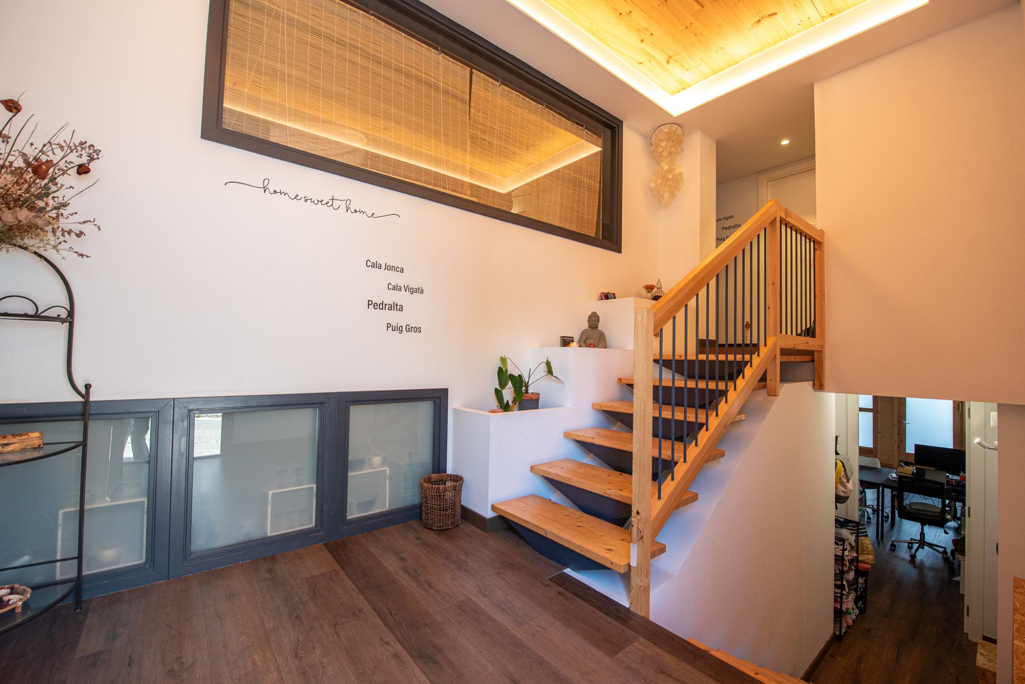El conjunto está conectado por una elegante escalera de madera y cuenta con el hueco preparado para la instalación de ascensor, aportando comodidad y accesibilidad.